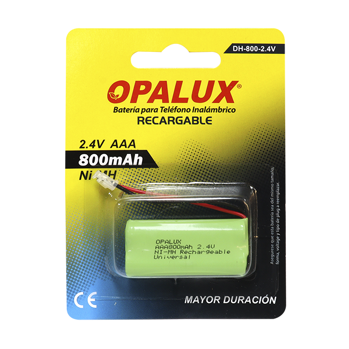 BATERIA RECARGABLE AAA NI-MH "OPALUX" PARA TELEFONO INALAMBRICO. 800 MAH 2.4V. EN BLISTER / CAJA X 10 / MASTER X 201