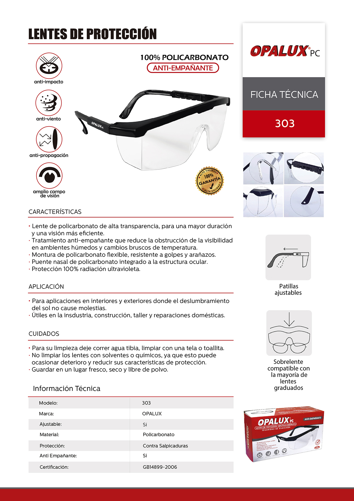LENTES DE PROTECCIÓN 100% POLICARBONATO