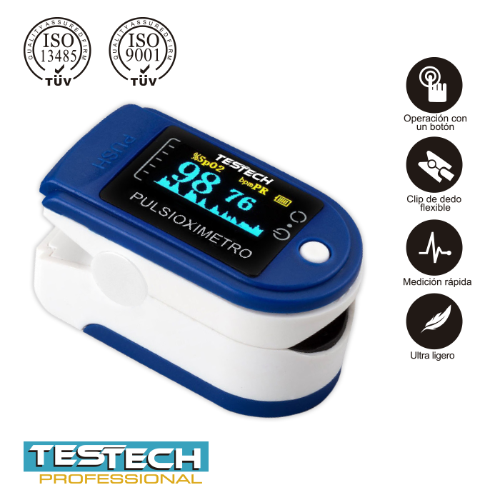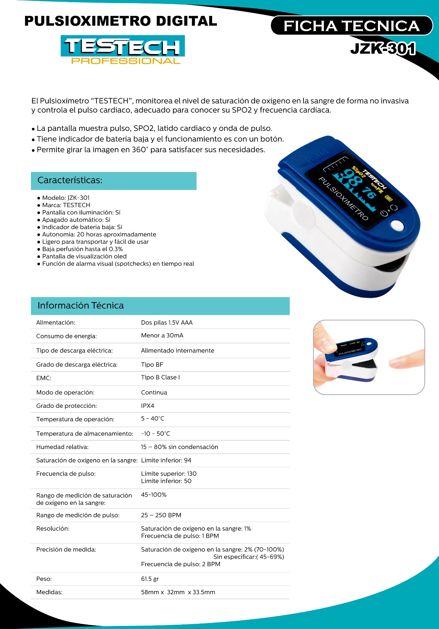 El Pulsioximetro monitorea el nivel de saturación de oxígeno en la sangre de forma no invasiva y controla el pulso cardíaco, adecuado para conocer su SPO2 y frecuencia cardíaca La pantalla muestra pulso, SPO2, latido cardíaco, onda de pulso. Tiene indicador de batería baja y el funcionamiento es con un botón, también le permite girar la imagen en 360 grados para satisfacer sus necesidades.