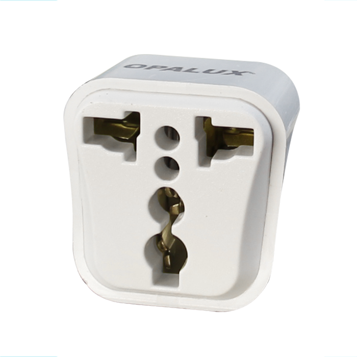 ADAPTADOR "OPALUX" 1 TOMA MULTIPLE 2 UNIVERSAL ENCHUFE PLANO 10AMP 250VAC 105°C, CARCASA ALTO IMPACTO. COLOR BLANCO. EN BLISTER /MASTER X 400