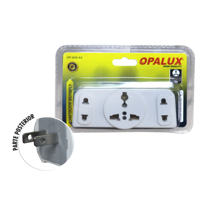 ● 1 Toma Multiple ● 2 Tomas Universales ● Potencia: 2200W ● Color: blanco ● Corriente máx.: 6A ● Voltaje: 250V ● Carcasa alto impacto ● 200 x Cj.